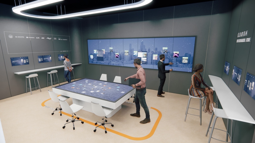 成果展示区是由四面LED屏围合而成10平方米的“CAVE空间”,实验操作区完成的成果通过三维多通道场景还原与展示技术可直接在该区域呈现。
