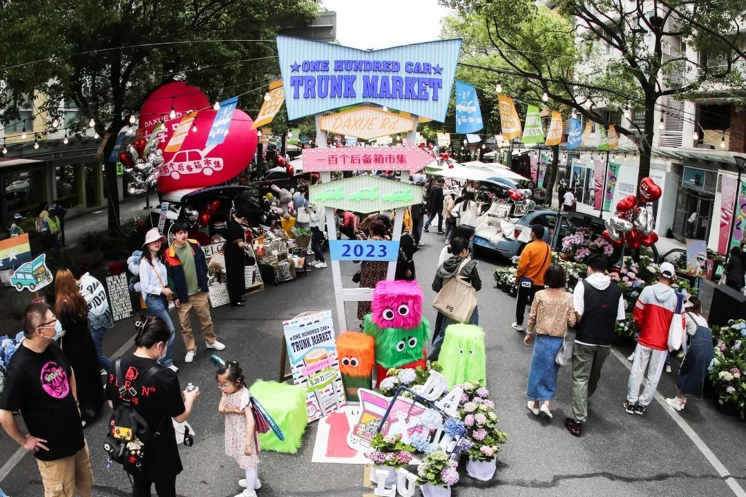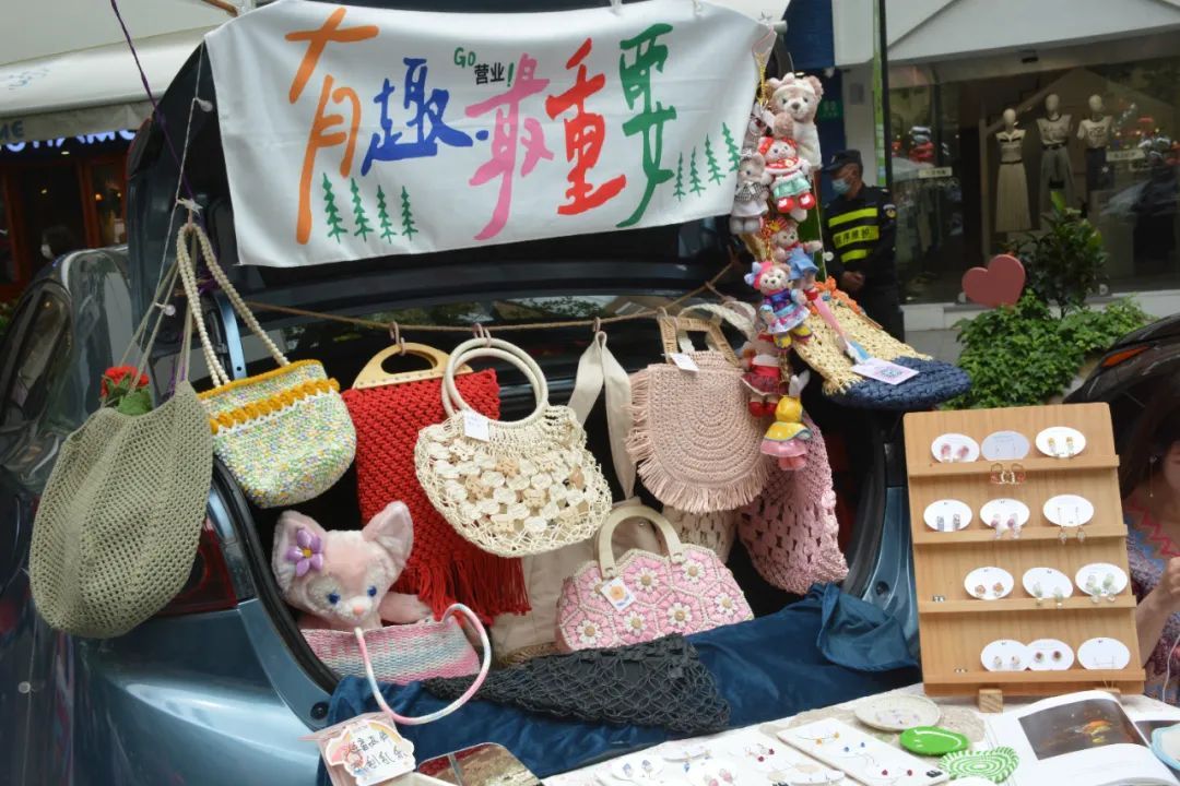 步行街的“好看好玩区”“环保区”“绿植区”“二手区”四个区域,一辆辆私家车整齐停放,打开后备箱,各种手工编织、套圈游乐、文创产品展示、艺术产品销售应有尽有,迎合了高校大学生、年轻白领的特殊消费和体验需求,打造了即有文艺范,又有烟火气的全新多元融合消费场景。