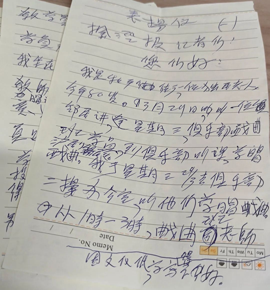 “在这一个多小时里,我享受着美好的精神食粮……”近日,金山区枫泾镇融媒体分中心收到了一封来自和平街老人李国英的感谢信。七页纸上写满了老人在枫泾镇社区老年学校上课时,对老师尽职尽责教、学生聚精会神学所营造出浓厚学习氛围的感激。