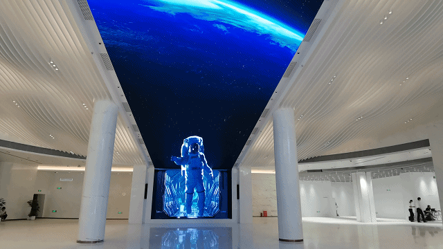 步入影城大堂,一幅长29米、宽6米的巨型高定制LED天幕映入眼帘。在震撼视听声效加成下,天幕展现出了拥有裸眼3D效果和沉浸式立体声效,可以说是影城的“0号厅”。