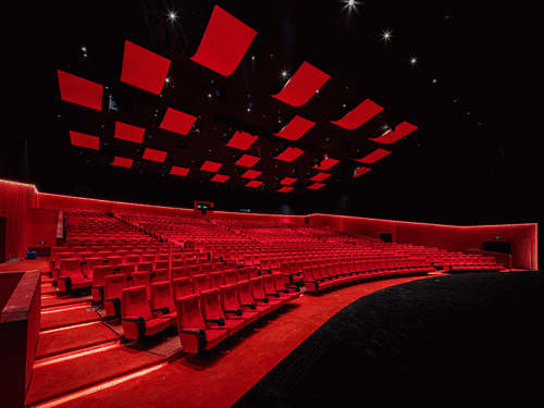 被称为“黑匣子里的专业影厅”的2号厅,除了配备有4K分辨率的Onyx LED银幕和专属声音系统,还有一项“隐藏技能”——专门定制的可伸缩活动座椅系统。当所有座椅收纳起来,影厅就将变身为500平方米的“黑匣子剧场”,为影院打造沉浸式多维影艺空间提供无限可能。