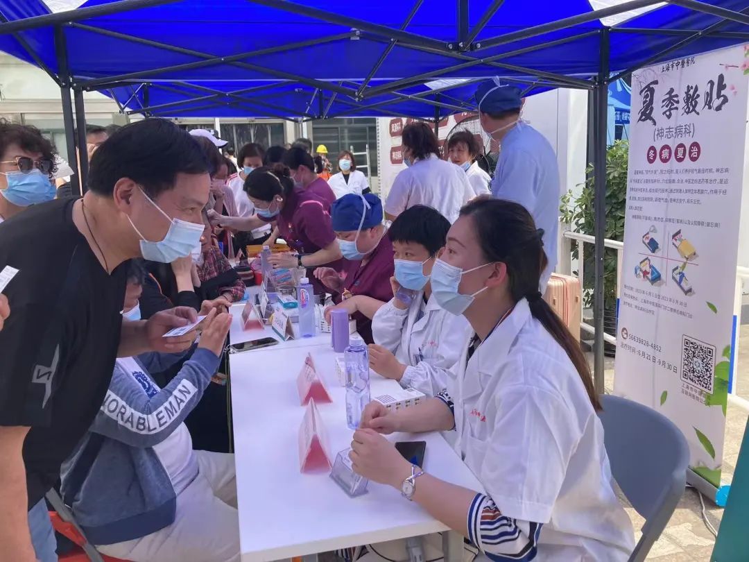 5月29日,上海市中医医院在芷江中路院区门诊大楼广场举行冬病夏治体验活动,前来咨询体验的市民络绎不绝。