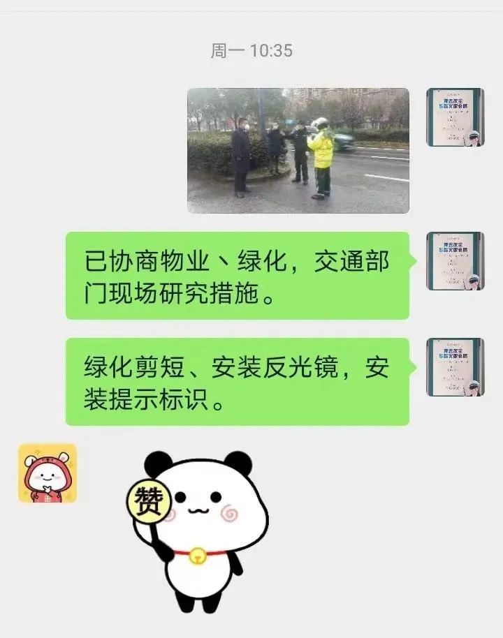 “真没想到群里提的问题,能引起这么多部门的重视。”居民谢先生说道。原来,谢先生家附近的湄浦路与月城路在今年3月通车后,车流激增且车速较快,于是通过“警民智联”平台提交了情况。杨行派出所社区民警获悉后,第一时间进行实地走访,听取居民群众意见,并联合派出所、交警支队、路政部门成立了工作小组。在半个月不到的时间内,就在小区西门外道路增设人行横道线和道路指示标志,又在东门铺设减速带,切实保障了居民出行安全。