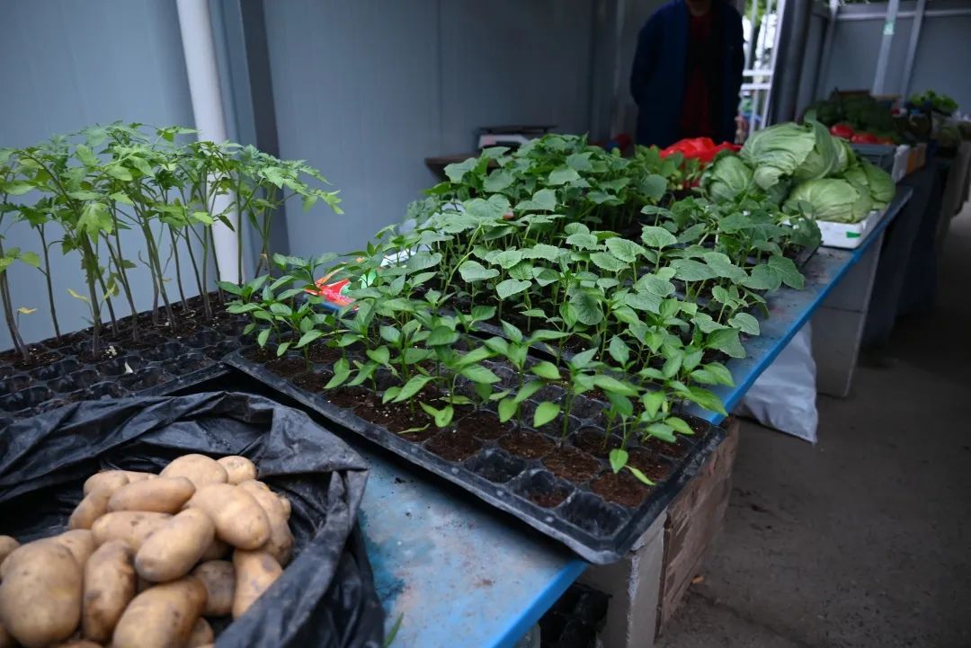蚕豆、豌豆、春笋、螺蛳、黄瓜、西瓜,还有农户自己培育的茄子苗、番茄苗……走进这个自产自销引导点,满满的时令感扑面而来。“我在庄行种菜种了20多年了,这些蔬菜苗是我种剩的,拿过来卖。”一位摊主介绍道。