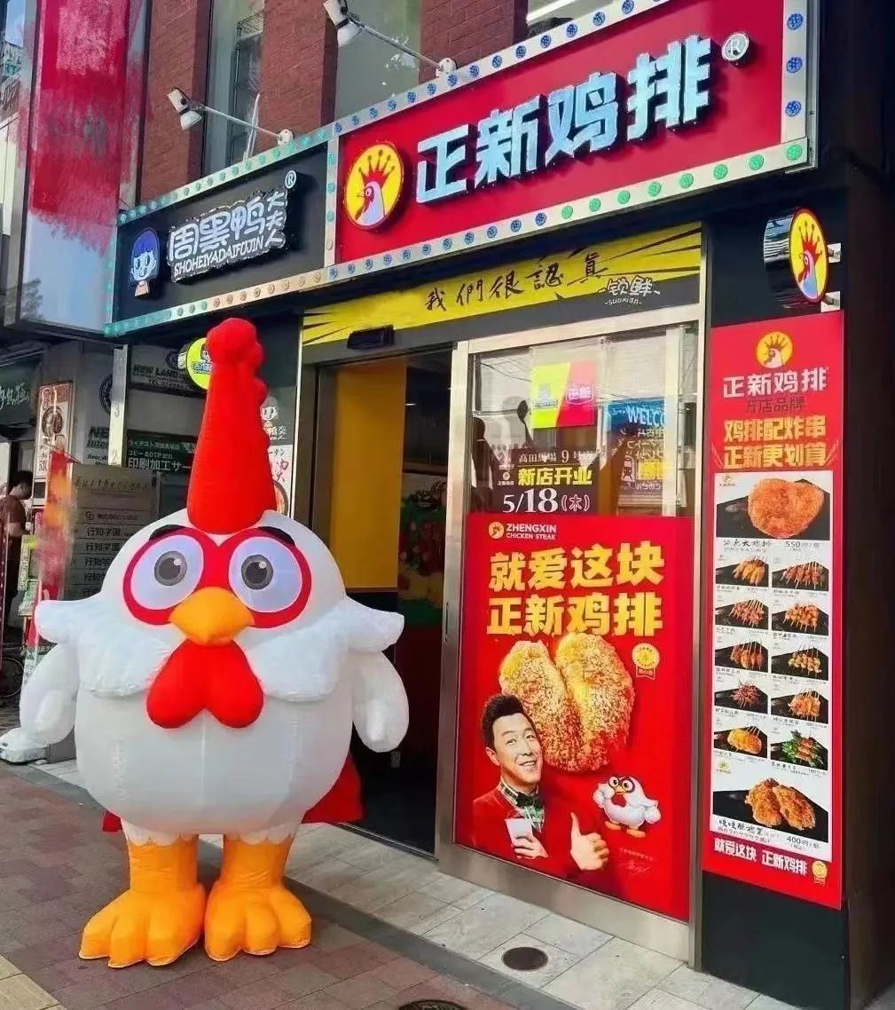 日本新店的整体风格与国内门店无异,店招上,带着王冠的“鸡王”标识在日本街头格外显眼。据正新集团相关负责人介绍,当天,卡通“鸡王”站在店门口迎客,可爱活泼的形象吸引不少路人围观,还不断有路人与“鸡王”合影互动。顾客们对鸡排的热情同样高涨,到了用餐高峰,店外排起了长队。