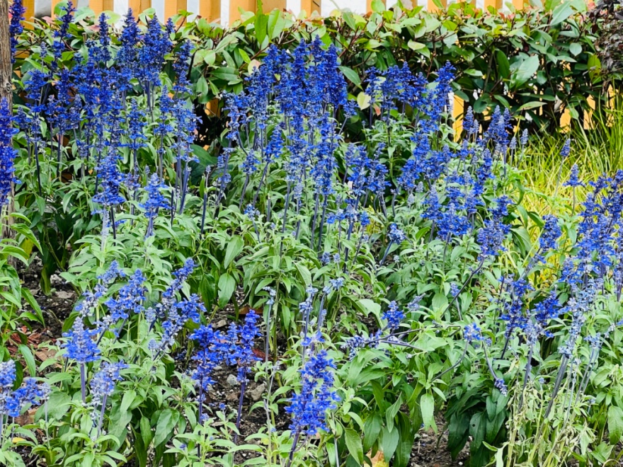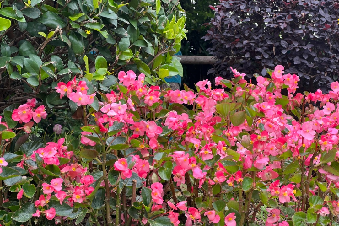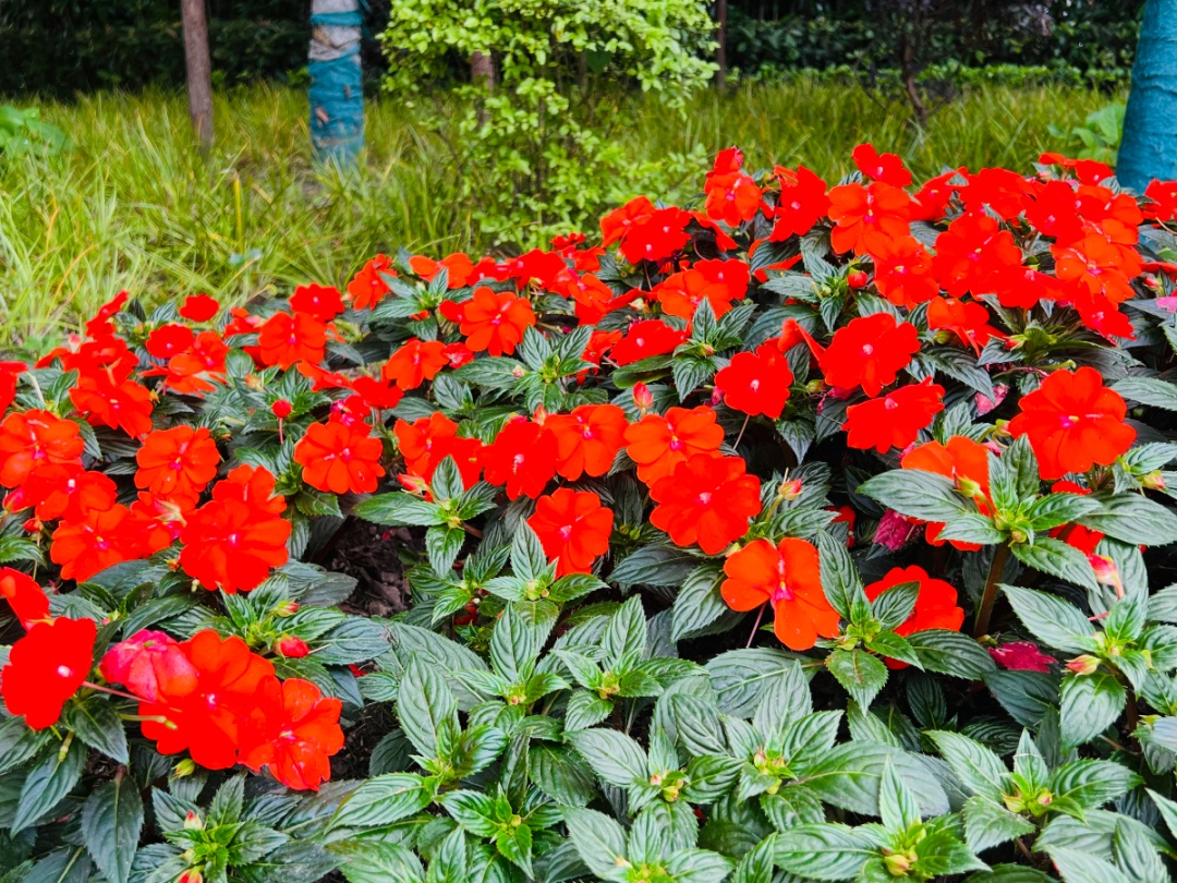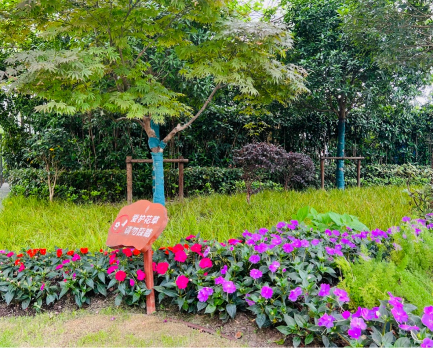 1500平方米的小小花境里,新种植了13种、8000多株观花植物,红一片、黄一片、粉一片、蓝一片、紫一片。