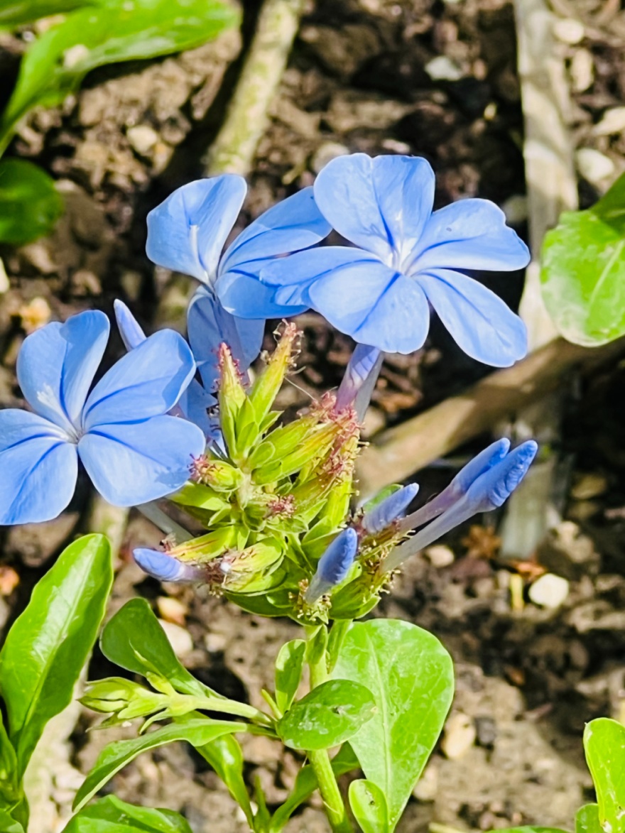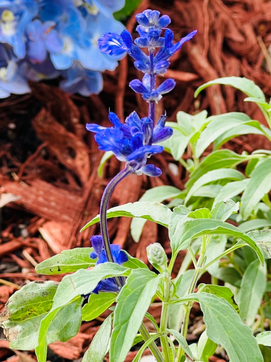 玉簪、绣球、蓝雪花、蓝霸鼠尾草、狐尾天门冬、美女樱……各色花草在阳光下绽放,每一朵都有着独特的形态和色彩。清澈的河水在眼前流淌而过,仿佛给这些缤纷的花朵注入了新的生命力和活力。
