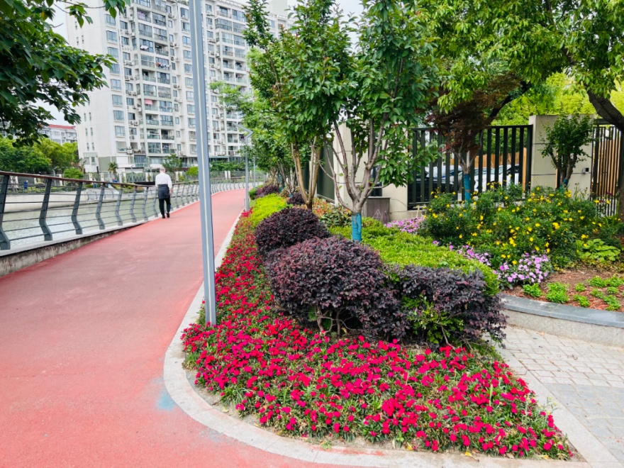初夏,徐汇区龙华港口袋公园南岸陷入了花海仙境。
