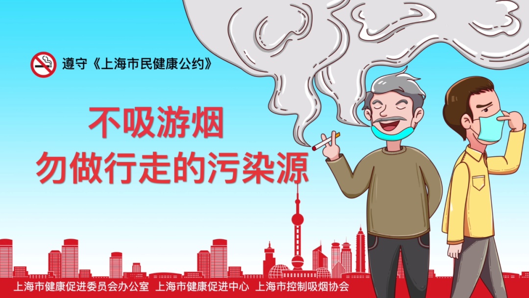 为此,《上海市民健康公约》“八不十提倡”和《上海市民健康生活新风尚》“25条健康金句”中将“不随处抽烟”“不吸游烟,勿做行走的污染源”列入核心内容,受到市民广泛赞同和践行。