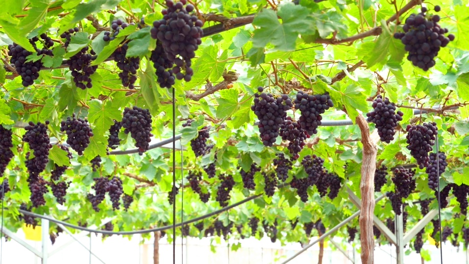 “绍星1号是2018年引入的早熟品种,虽然开花比较晚,但是从开花到成熟的时间比较短,大约45天就可以成熟。”单文龙说,绍星1号的采摘期约为一周,接下来还有旭旺四号、京蜜、日光红无核等陆续开放采摘。