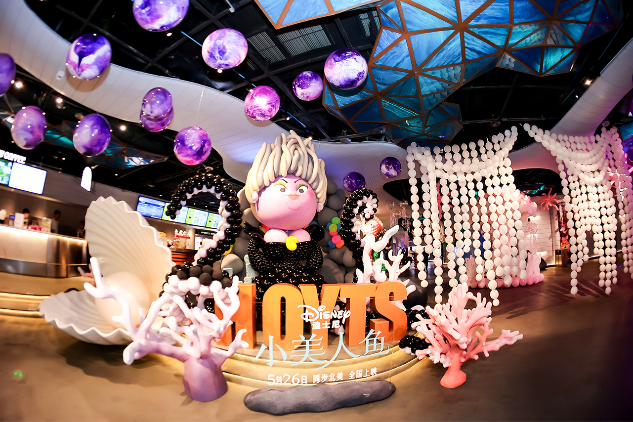 在上海寰映影城久光中心店,小美人鱼气球限定展浪漫上线。五彩缤纷的气球变身电影中让人熟知的角色,将唯美的海底世界从银幕带到了现实中,让观众身临其境,感受别具一格的唯美视觉体验。