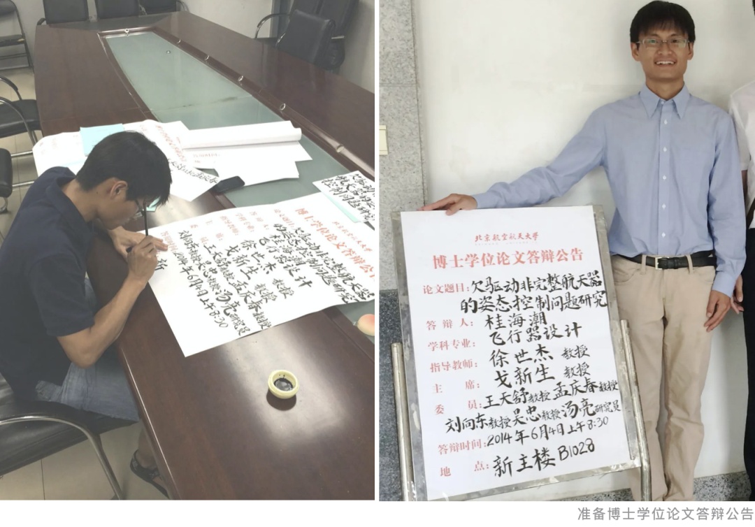 神十六乘组中,航天员桂海潮也很喜欢书法、爱好练字,博士毕业论文答辩公告是自己亲手用毛笔写的,别具一格。