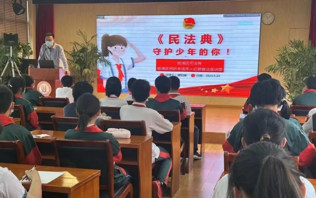 宣传月期间,杨浦各中小学校积极邀请以法治副校长为主的法律专家,来校开设民法典专题讲座,扩大民法典对青少年世界观、人生观、价值观的影响。