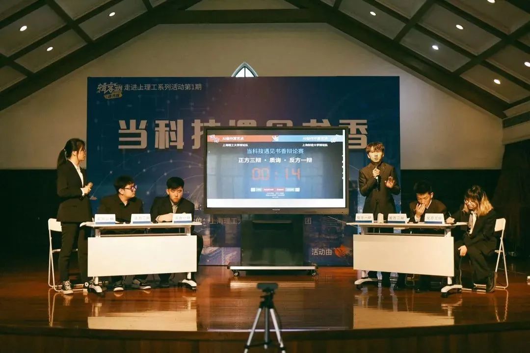 在辩论赛环节,上海财经大学思辨社的同学,与上海理工大学校辩论队就“你认为AI创作算是艺术吗?”这一辩题展开辩论。赛场上,双方辩手旁征博引,从多角度多层次探讨了科技与艺术的关系,现场金句频出。经评委们经现场讨论,上海财经大学思辨社获胜。评委代表对辩手们的表现做了精彩的点评,并表示期待大家今后在阅读和思考中不断碰撞出思想的火花。