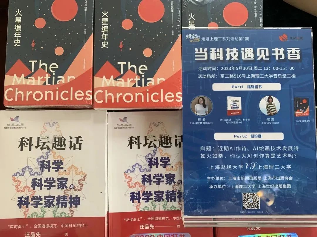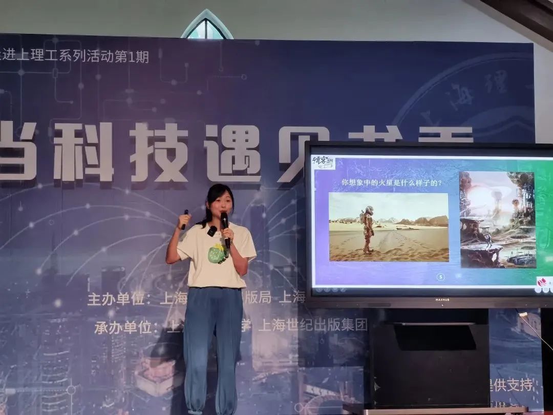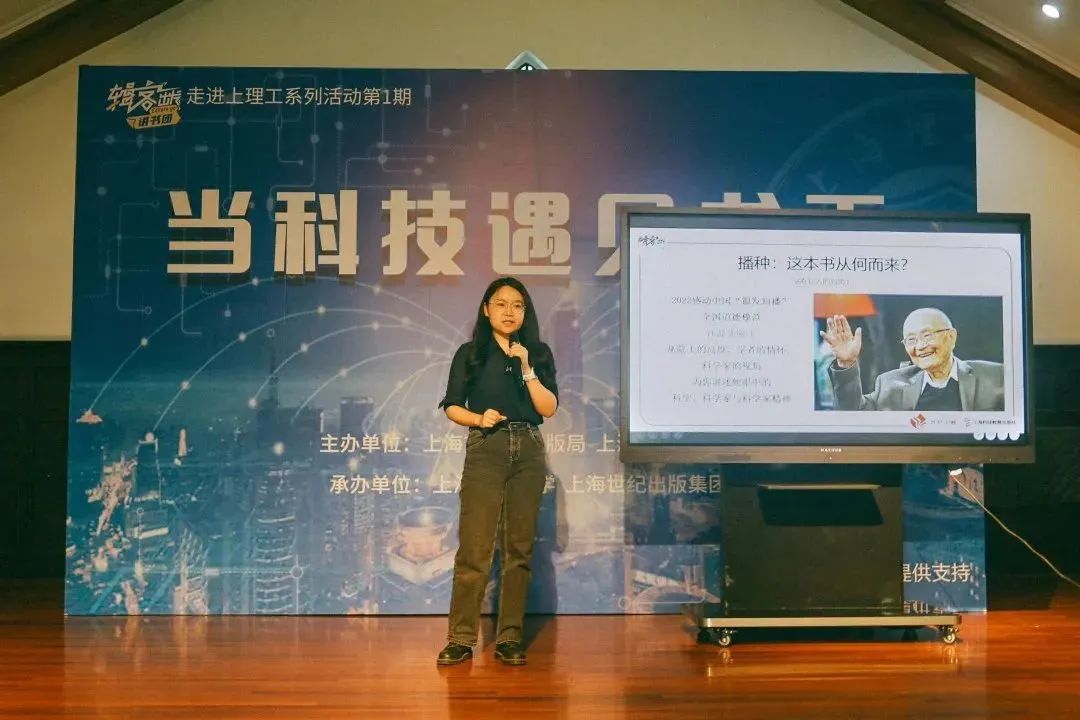 在讲书环节,《科坛趣话——科学、科学家与科学家精神》责任编辑、上海科技教育出版社程着,讲述了《科坛趣话》从策划到编辑加工、再到最后成功出版的背后故事,让同学们深感一本书问世之不易。《火星编年史》责任编辑、上海译文出版社邹滢着重分享了《火星编年史》中的两篇代表性短篇作品以及故事背后蕴含的深意,她认为,科幻在她看来就是科学的另一种表达,它的迷人之处在于它能够带领我们穿梭于广阔的外层宇宙和人类内心的宇宙之间。