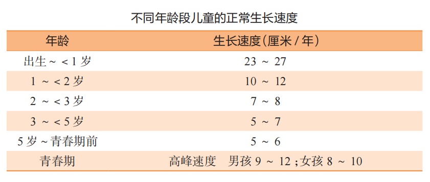 孩子是否因挑食导致摄入食物量不足,可以通过儿童的体格生长速度(如身高正常生长速度,见下表)来评估。总的原则是增加食物种类、满足多种营养素需求、保证正常的生长发育。