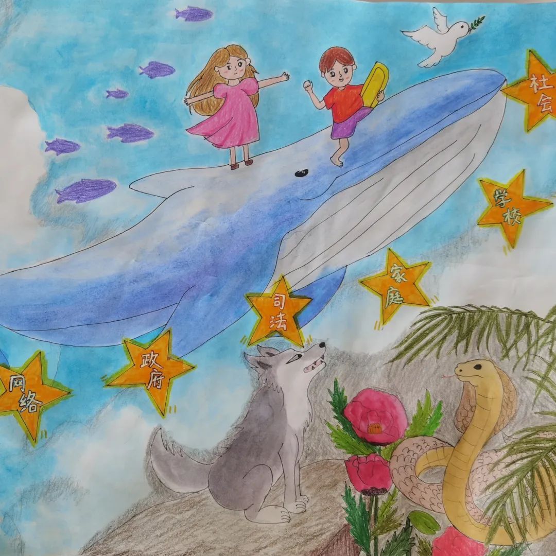 未成年人是国家的希望,民族的未来。鲸鱼是海洋里的“一方霸主”,希望孩子像鲸鱼一样能强大。少年强则国强,少年智则国智,少年富则国富,少年进步则国进步。凝心聚力、“未”爱守护,共同关爱未成年人健康成长。