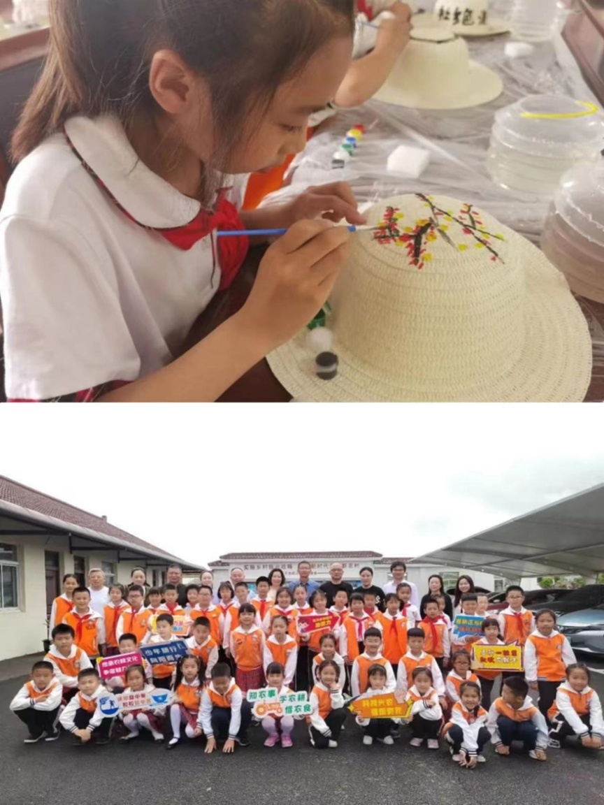 手绘草帽:同学们在一顶朴实的遮阳草帽上绘制属于自己的创意草帽,发挥创新思维,挖掘少年儿童的创造力和想象力,享受手工带来的幸福感和成就感,同时也增进了同学们间的互动交流。