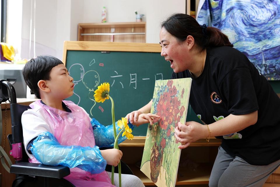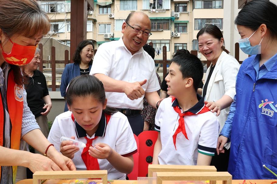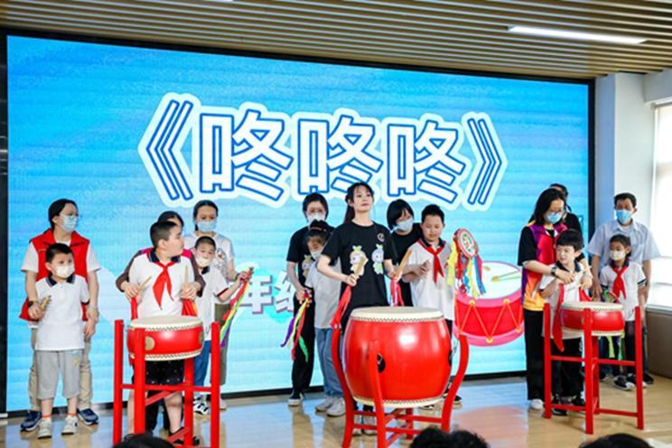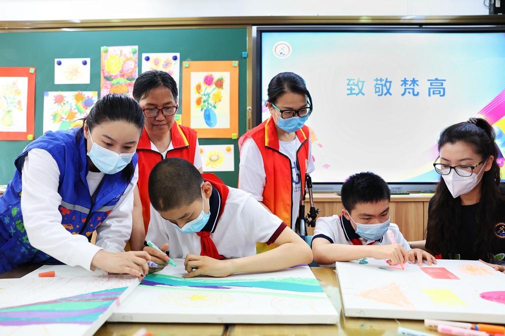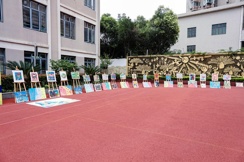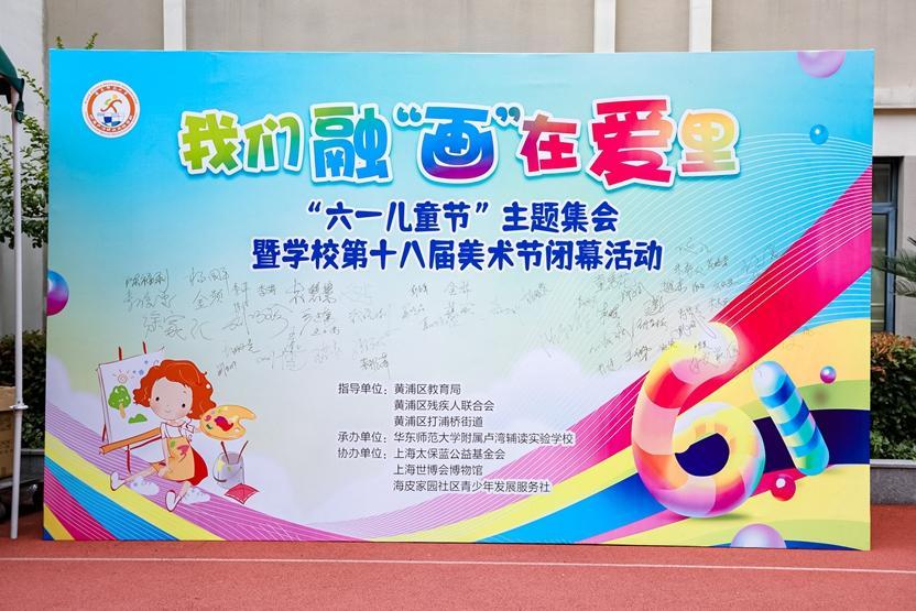 儿童节当天,华师大附属卢湾辅读实验学校庆“六一”暨校美术节牵手太保蓝公益书画营闭幕活动在校园举行。