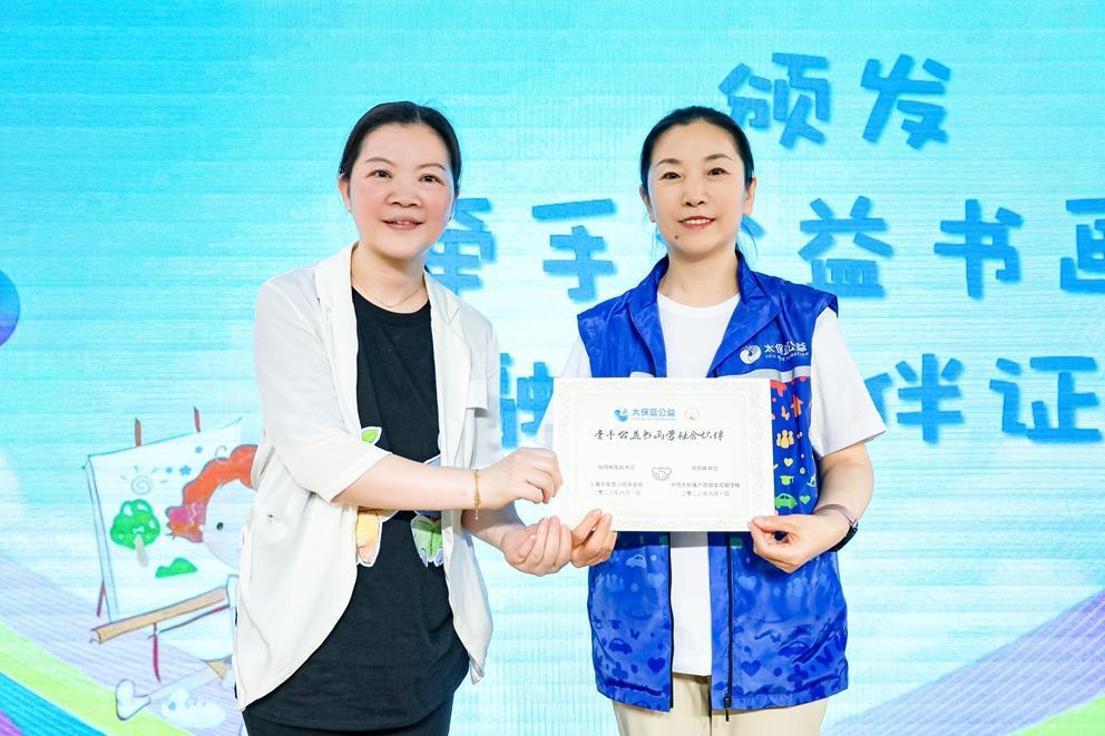 在活动中,华师大附属卢湾辅读实验学校授予上海太保蓝公益基金会融合伙伴证书,上海市实验小学学生的艺术周边参与了学校的义卖活动,上海市七色花小学带来了精彩演出,真正诠释了特殊教育的普惠融合。