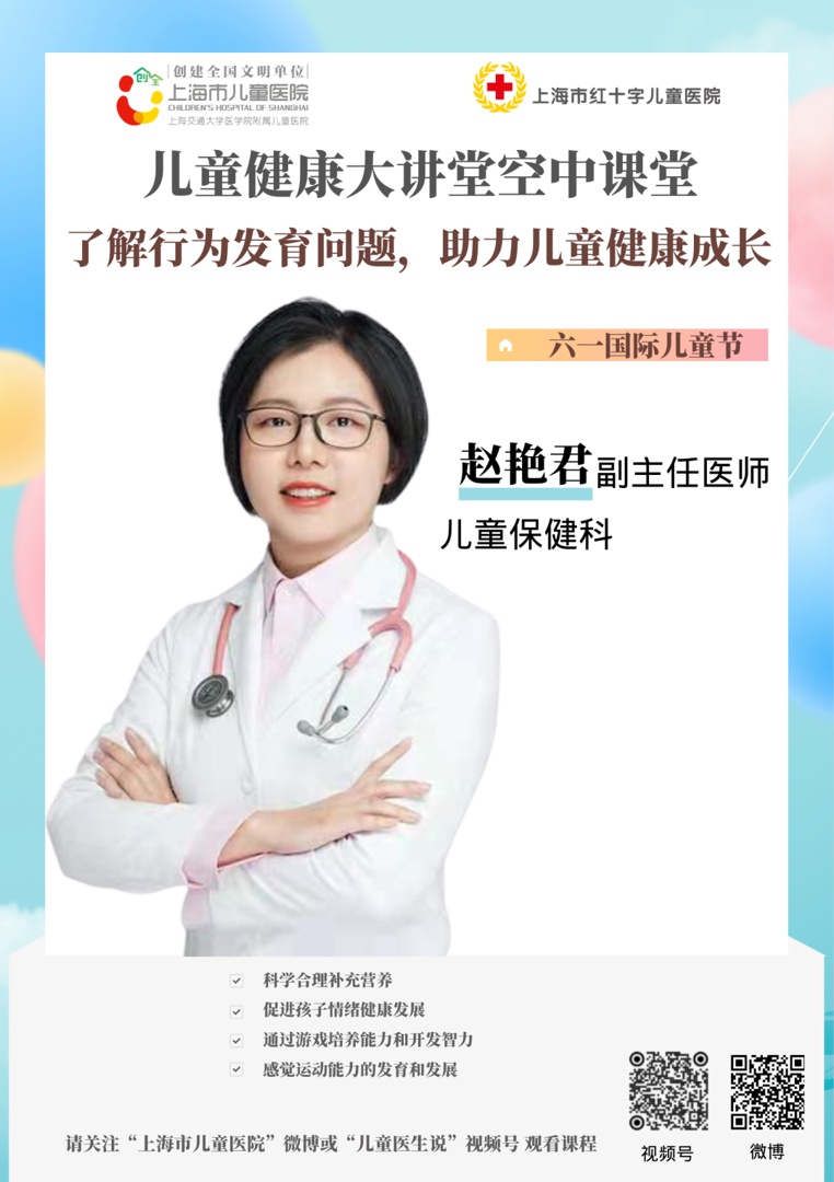 本期儿童健康大讲堂空中课堂,我们邀请了上海市儿童医院儿童保健科赵艳君副主任医师,为大家答疑解惑。帮助孩子度过一个健康快乐、充实且有意义的童年。