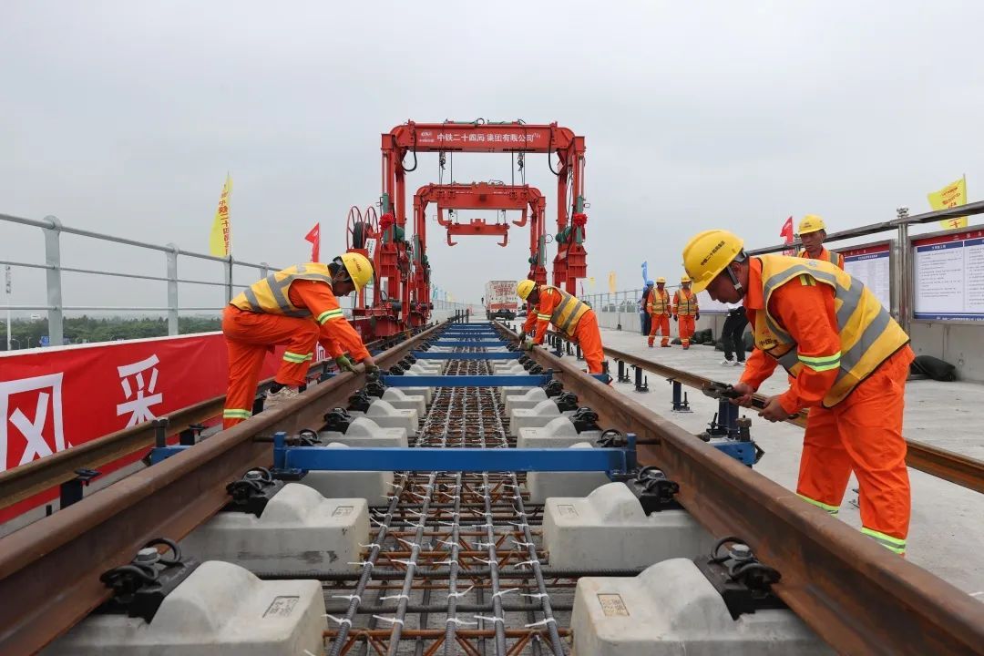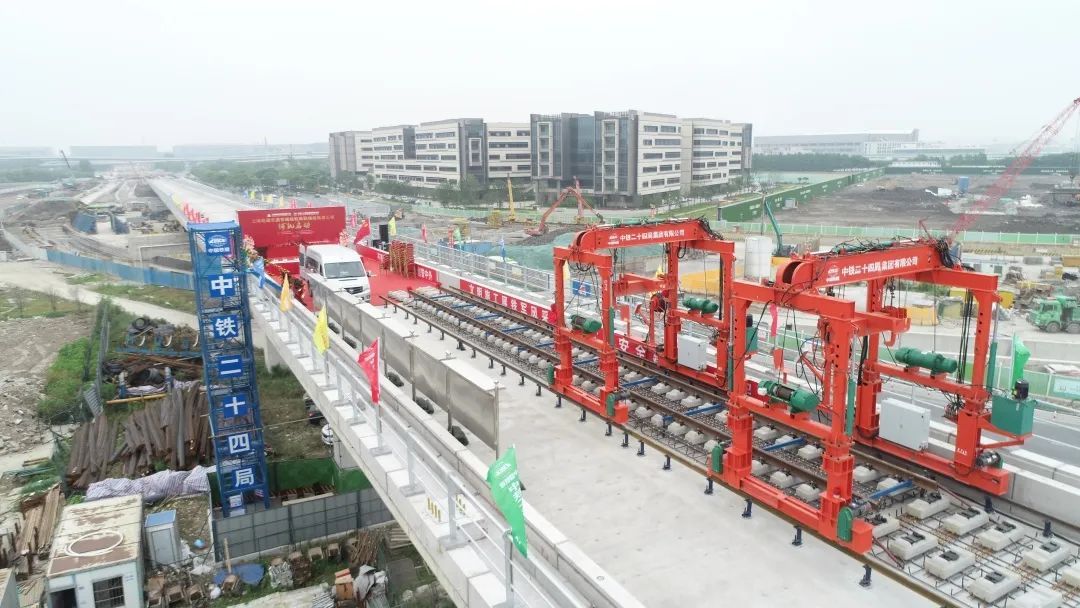 5月31日上午,在上海申铁投资建设、中铁二十四局承建的机场联络线轨道施工1标项目现场,机场联络线轨道工程铺轨作业正式启动。