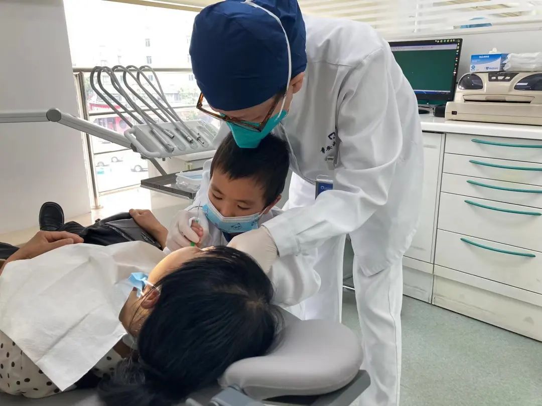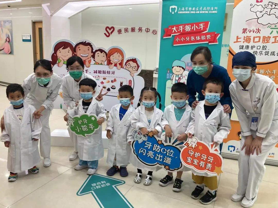 当天中午,区牙防所携手曹家渡街道,邀请社区小朋友们来到武宁门诊部,与门诊部的医生一起进行“大手握小手,小小牙医体验营”活动。