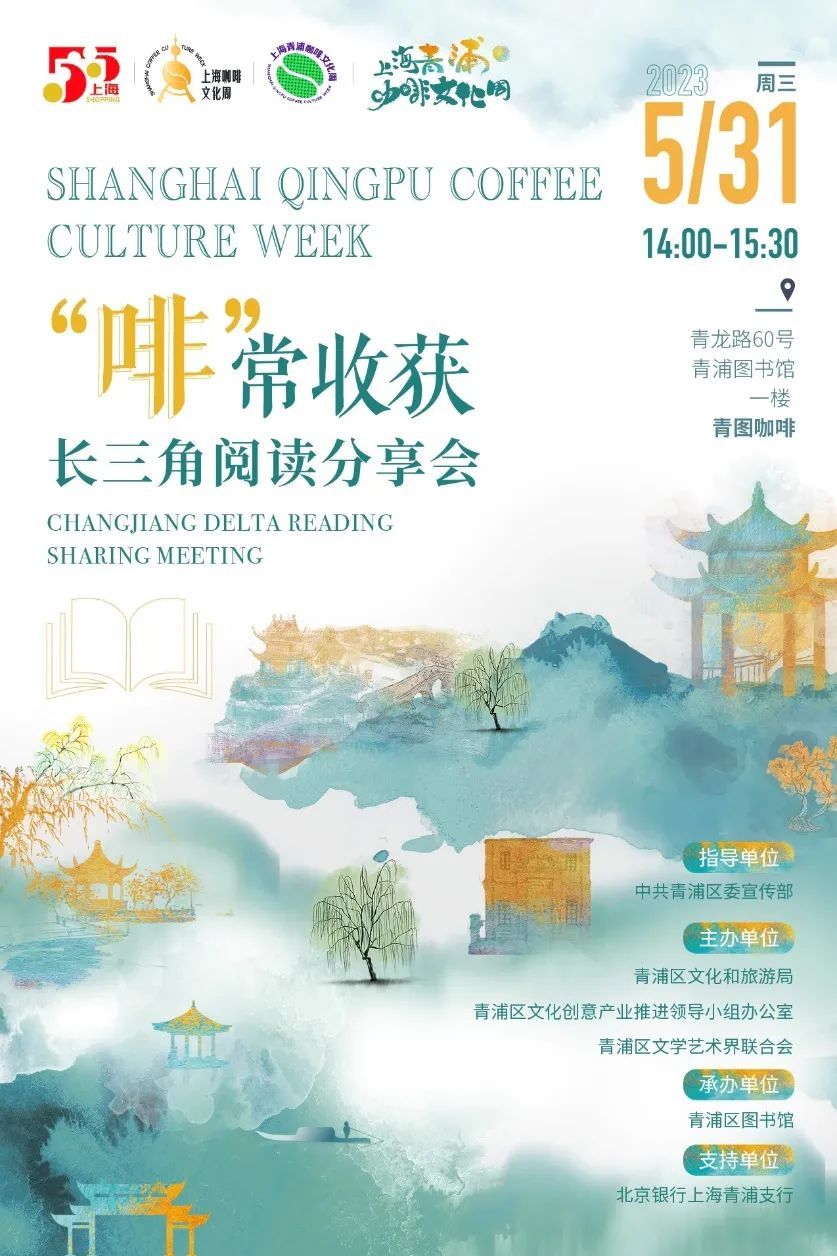 5月31日下午,“啡”常收获——长三角阅读分享会在青浦图书馆一楼青图咖啡空间举行。以“咖啡”为“流量密码”, “咖啡+文化”跨界出圈,来自青、吴、嘉三地相关专家、学者齐聚,探索上海之门与文化江南传承、创造的特质和基因,分享江南文化的精神内涵和当代价值,打造更具文化识别力的现代化枢纽门户城市形象。