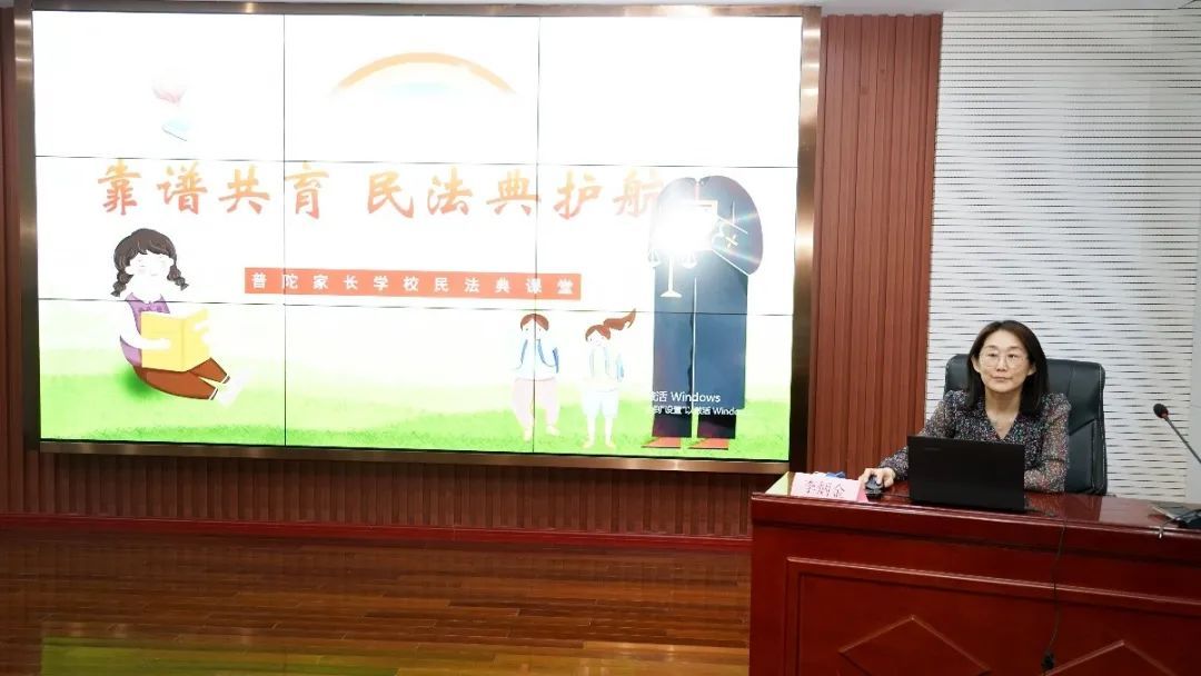 据悉,今年5月是全国第三个民法典宣传月,也是首次在家长学校开设民法典普法课堂。普陀区司法局、普陀区教育局、普陀家长学校系统谋划,合力推进,将普法教育嵌入家校社共育机制,深入推进民法典进学校、进家庭,送“典”入民心,给幸福加(家)‘典’料,丰富教育资源,为家庭提供更加多元的宣传教育服务。