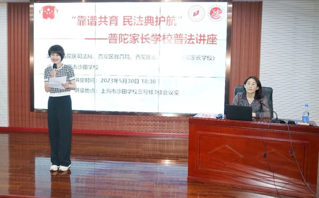 日前,在普陀区司法局、普陀区教育局、普陀区业余大学(普陀家长学校)的共同组织下,普陀区“给幸福加‘典’料”系列活动之“靠谱共育 民法典护航”普法讲座在沙田中学举办,讲座采用线上线下相结合的形式,近300位沙田学校的学生家长参加。