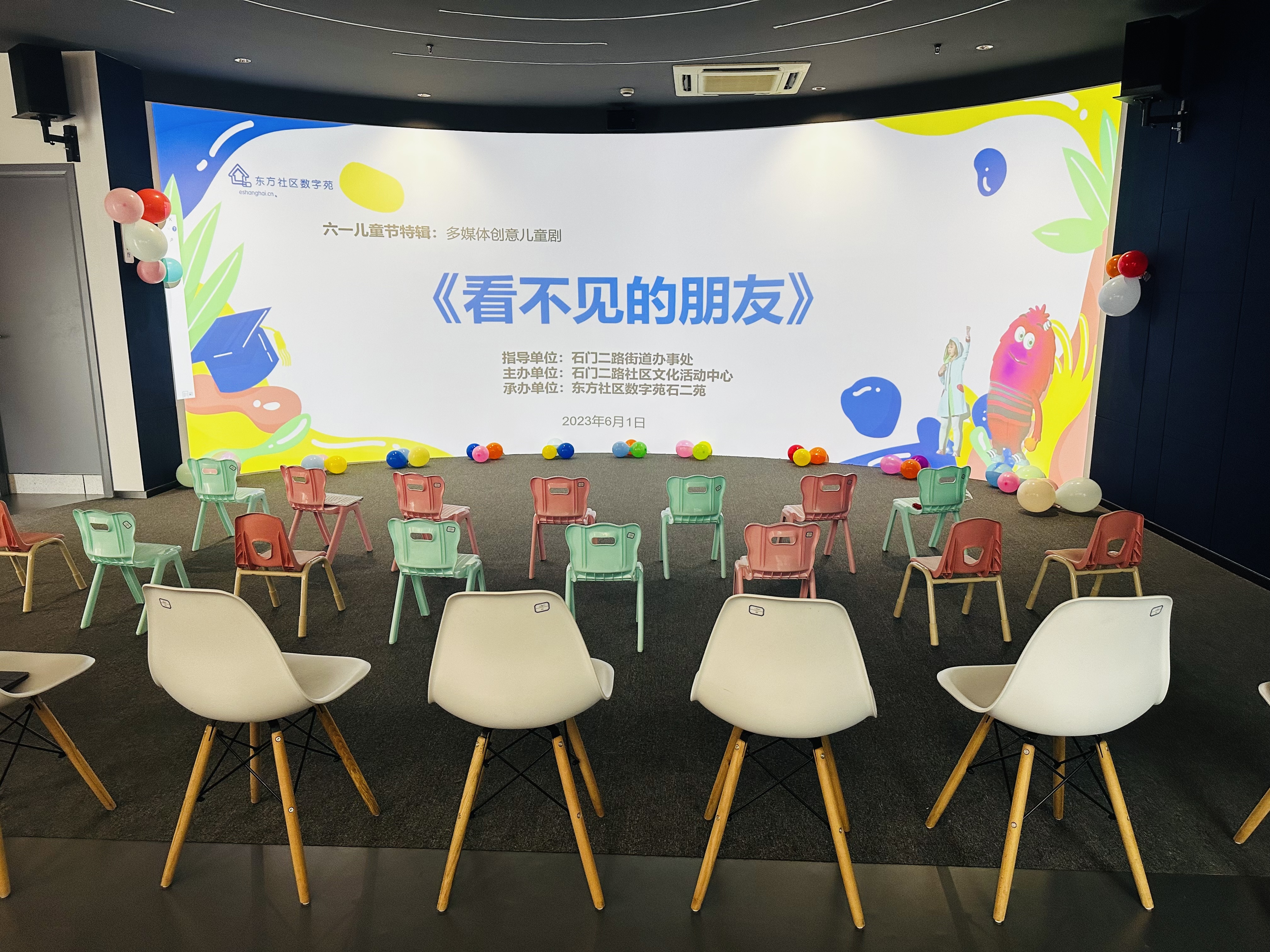 东方社区数字苑的沉浸式数字展厅内,精彩的创意儿童剧《看不见的朋友》正在上演。与传统的演出需要到现场不一样,孩子们在具有科技感的弧幕大屏前,就能欣赏到精彩的演出,开阔的视野配合环幕音效,孩子们迅速进入充满童真与幻想的世界。