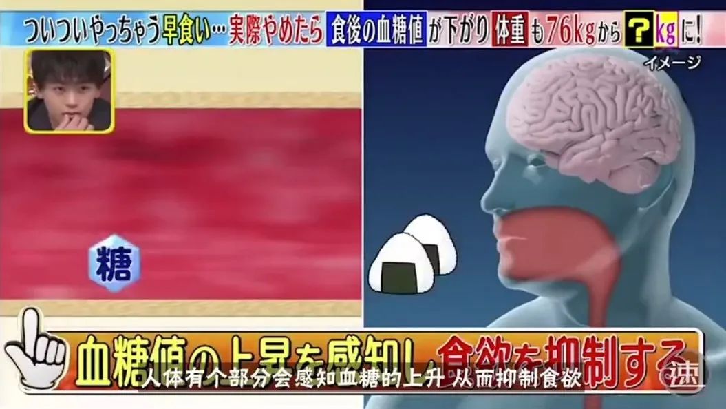 日本某电视节目曾做过一项实验,当参试者放慢吃饭速度后(平均每口食物咀嚼4下→每口食物咀嚼28下),不但饭量减少了,血糖值上升也变得缓慢,10天后,体重降低了2.1千克。