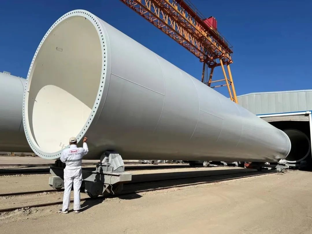 近年来,德威公司的研发有效地打破了这些外资品牌的卡脖子技术,市场应用前景良好。上海德威新能源自主研发设计了适用于大型风力发电百米长叶片的树脂体系和胶粘剂体系,该体系具有优异的机械与抗疲劳性能。目前,德威新能源灌注树脂、手糊树脂和高性能胶粘剂具有完全自主知识产权,原材料国产化率达到100%。通过性能测试比对,德威树脂、胶粘剂在树脂性能与工艺性方面均达到或超过国际品牌的性能,打破了国外品牌技术垄断的地位。