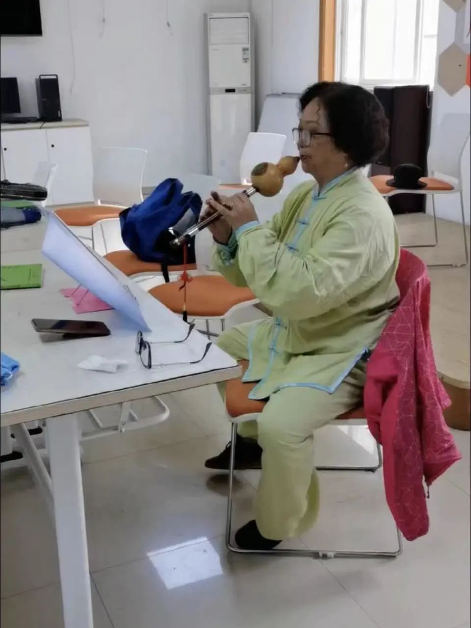 于是,周家湾居民区向街道倡议,组建一支葫芦丝团队,苏阿姨和团队成员沟通后,也一拍即合。经过街道、机场党群服务中心、周家湾居民区、葫芦丝团队多方协调,由街道机场党群服务中心提供场地,每周三固定在机场党群服务中心日常活动。这不仅是解决了排练场地的燃眉之急,也为文艺爱好者的业余生活建立一个良好的平台。