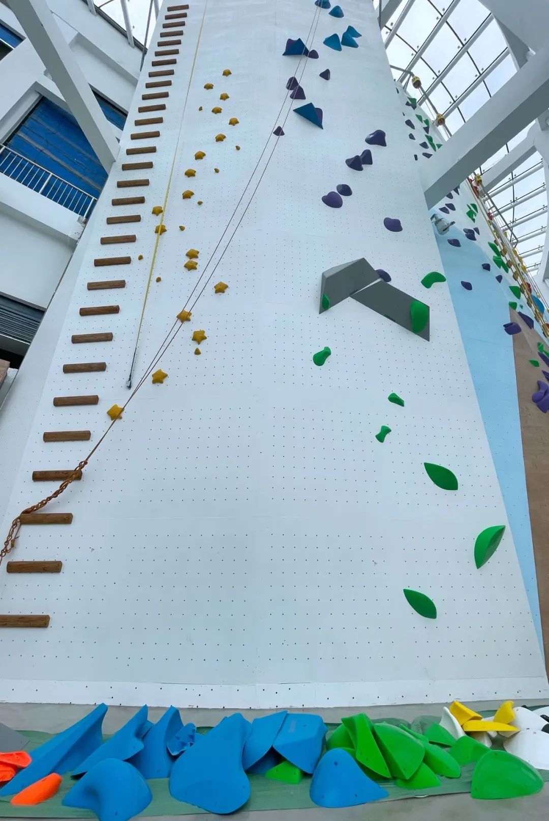 攀岩馆占地180平方米,岩壁高度18米,可供攀爬面积450平方米,是一个以高度为主的攀岩场馆。整个场馆分为新手体验入门区、速度训练与比赛区、先锋与顶绳攀爬区、抱石训练与综合训练区,专业运动者和普通爱好者都可以找到适合自己的区域。