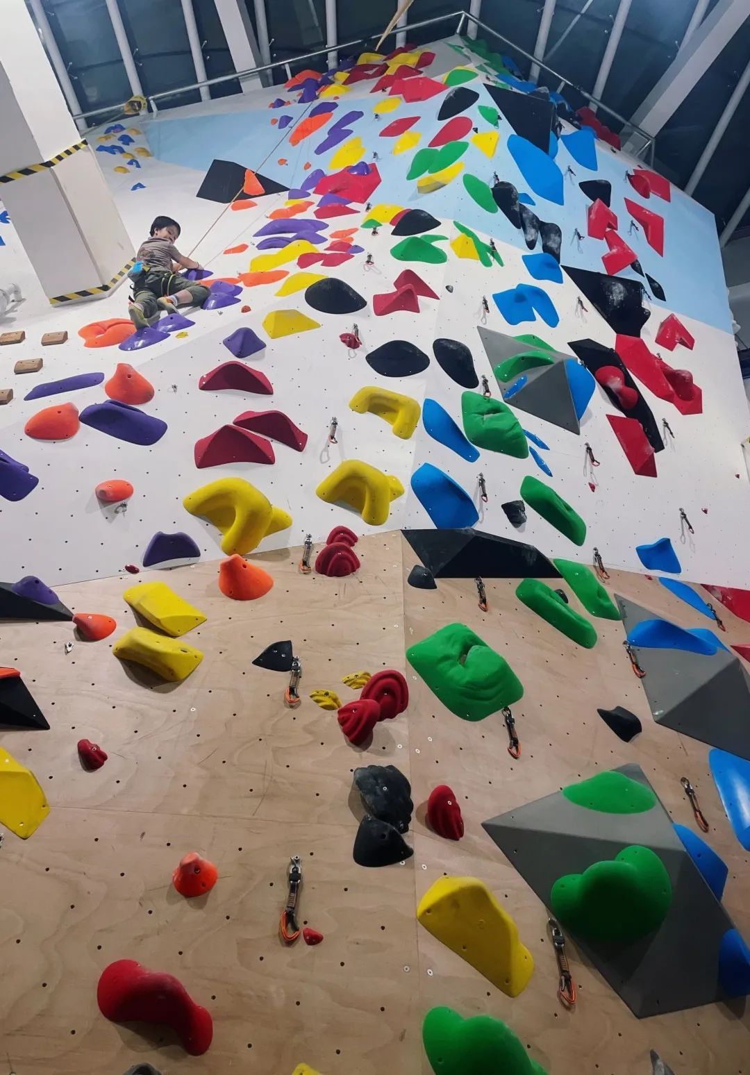 LE MONT攀岩馆的新手体验区岩壁高度达17米,配备有四个自动保护器,让新手可以安心攀登。这里有着难度不等的10余条线路,从新手友好的5.6n难度到5.10难度,不同的难度选择,陪你“升级打怪”技术攀升!