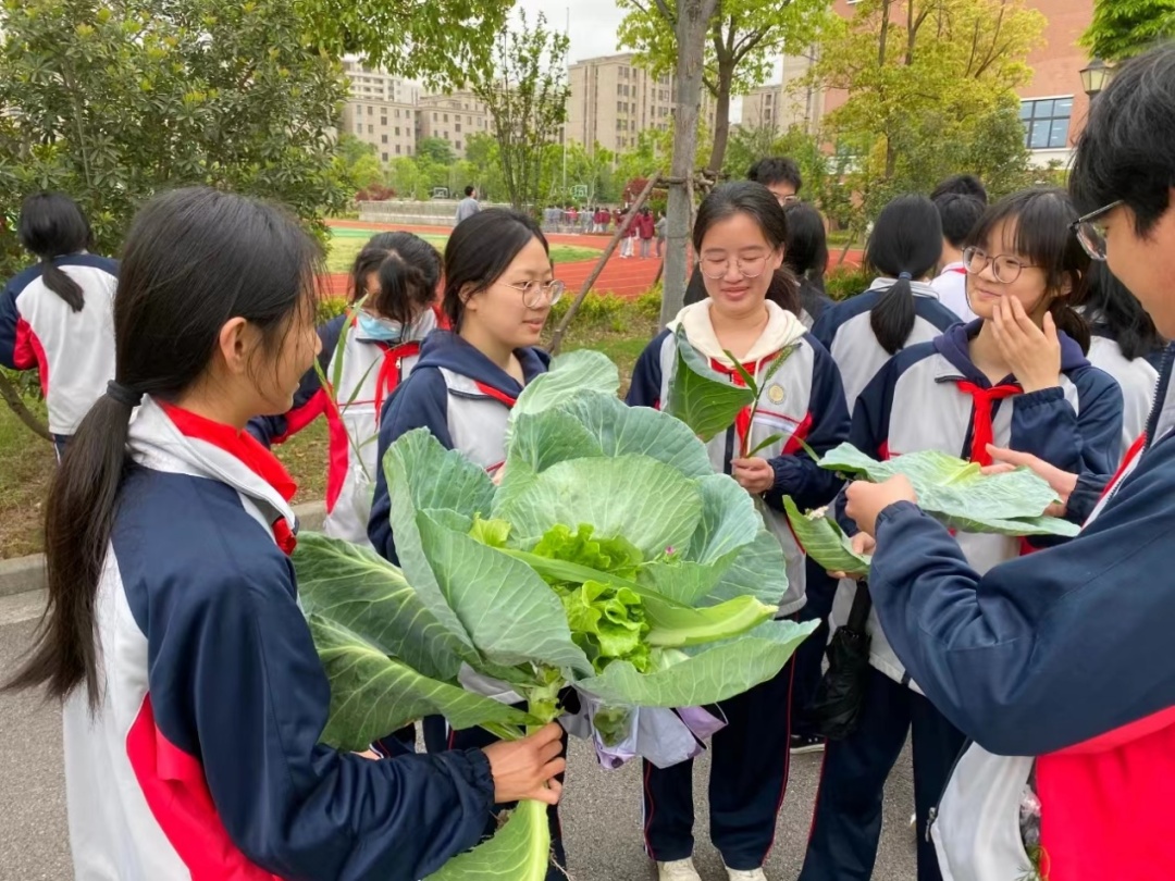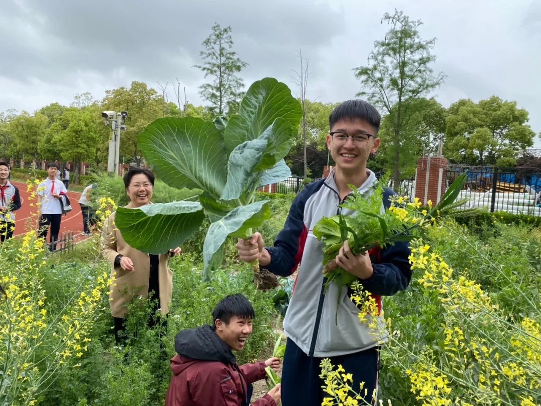 顾村中学生命科学组的老师带领学生们在师生共同辛勤耕耘悉心呵护的生态校园中,游园、赏花、摘菜,看到亲手抚育的月季花开了,自豪、惊喜、欢乐写在他们脸上,欢声笑语,其乐融融。