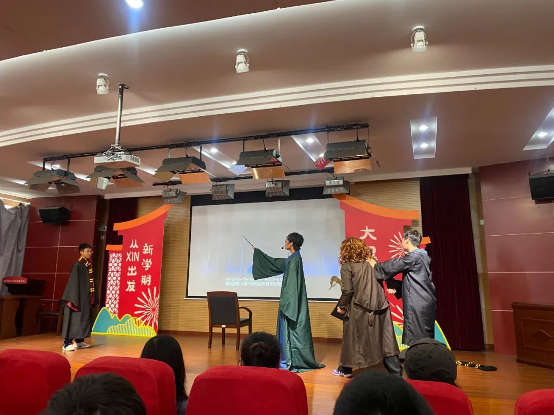 新民实验学校的课本剧演出专场上,各班精心准备了《哈利波特》《小红帽》《灰姑娘》等,学生们不仅展示了自己的才能,也丰富了校园的文化生活。