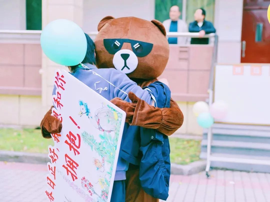 华曜宝山实验学校举行了“爱的抱抱”活动。活动现场,班主任们身着可爱的玩偶服穿梭在人群中,和路过的学生们热情拥抱互动。一个看似简单的拥抱,让在繁忙的学习工作中的师生抬头望向彼此。