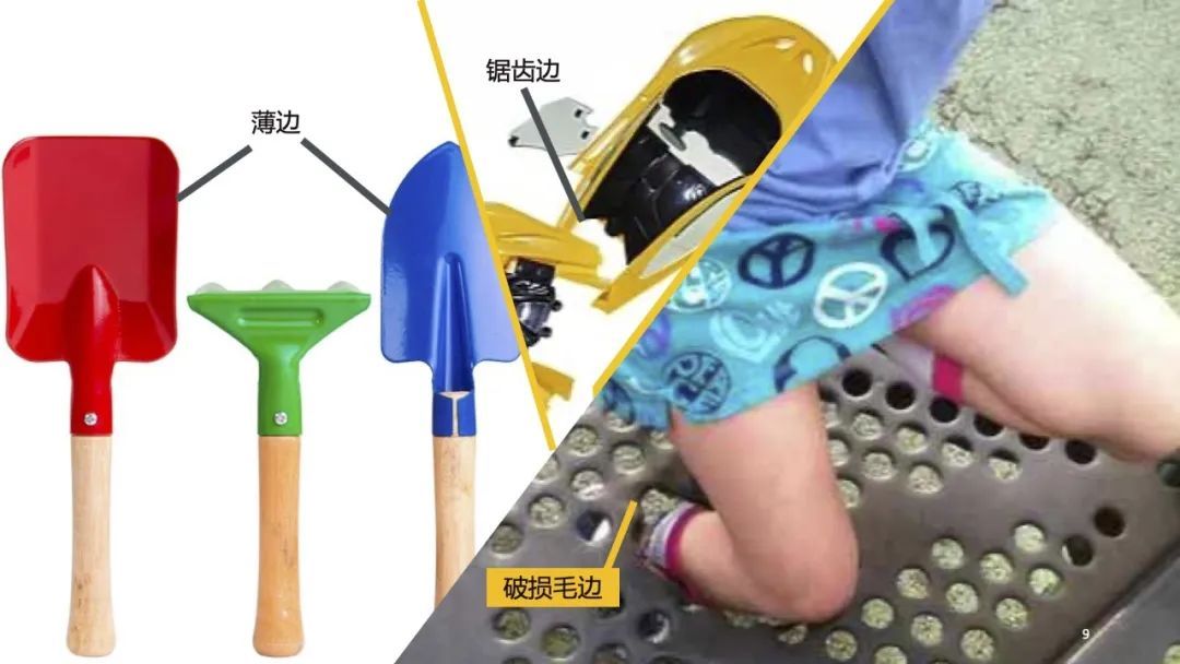 2、尖点利边:玩具上如果有尖点或利边,边缘或角落有破损或毛躁,某些玩具如拼图、积木等,存在塑料尖刺或木刺,容易对儿童造成伤害,如划伤、戳伤等。