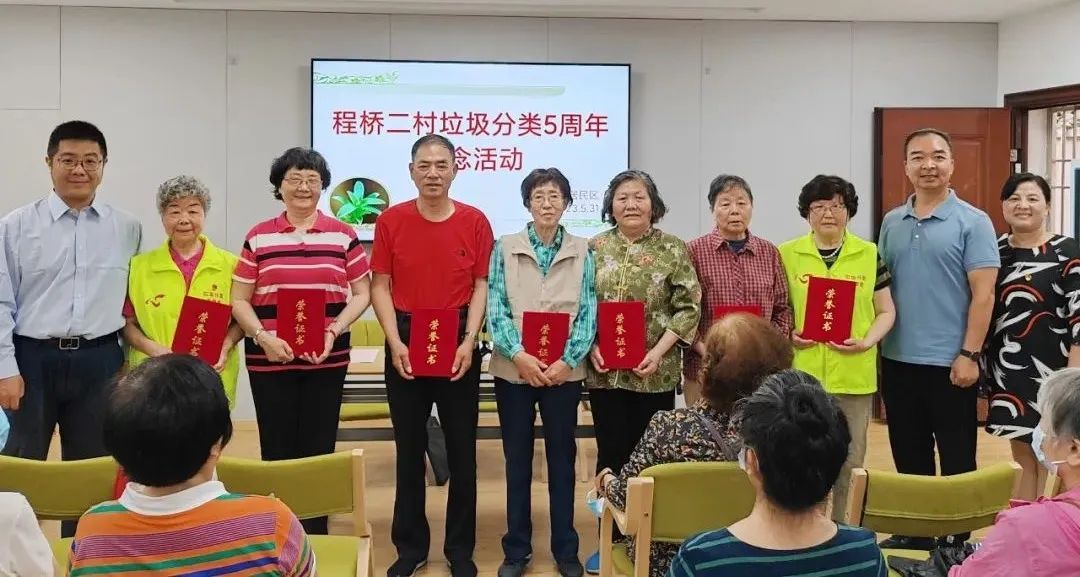 5月31日上午,程家桥街道程桥二村的开心会馆里,7名优秀垃圾分类志愿者都收到了一封特殊的“感谢信”,里面写道“感谢您在小区垃圾分类工作中表现出色”。收到这份“肯定”,这7位志愿者说,“垃圾分类从新时尚到好习惯,这5年,值了。”