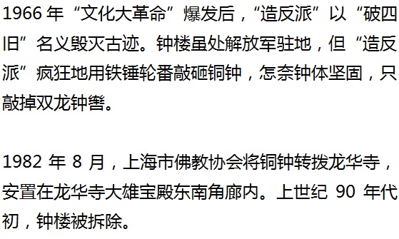 明崇祯六年(1633)六月二十五日,遭飓风,钟楼又毁,折断一根楠木大柱。崇祯十六年(1643),寺僧雪岑主持重建钟楼,“时值兵燹,物力艰难,赖翁逸南等乐输”。十二月十二日,新建钟楼升钟,万历铜钟的钟声重新响彻四方。