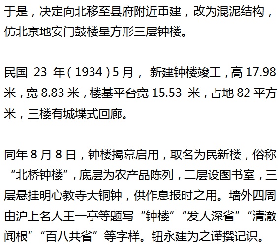 1934年8月8日,北桥新建成钟楼,名为民新楼,俗称“北桥钟楼”