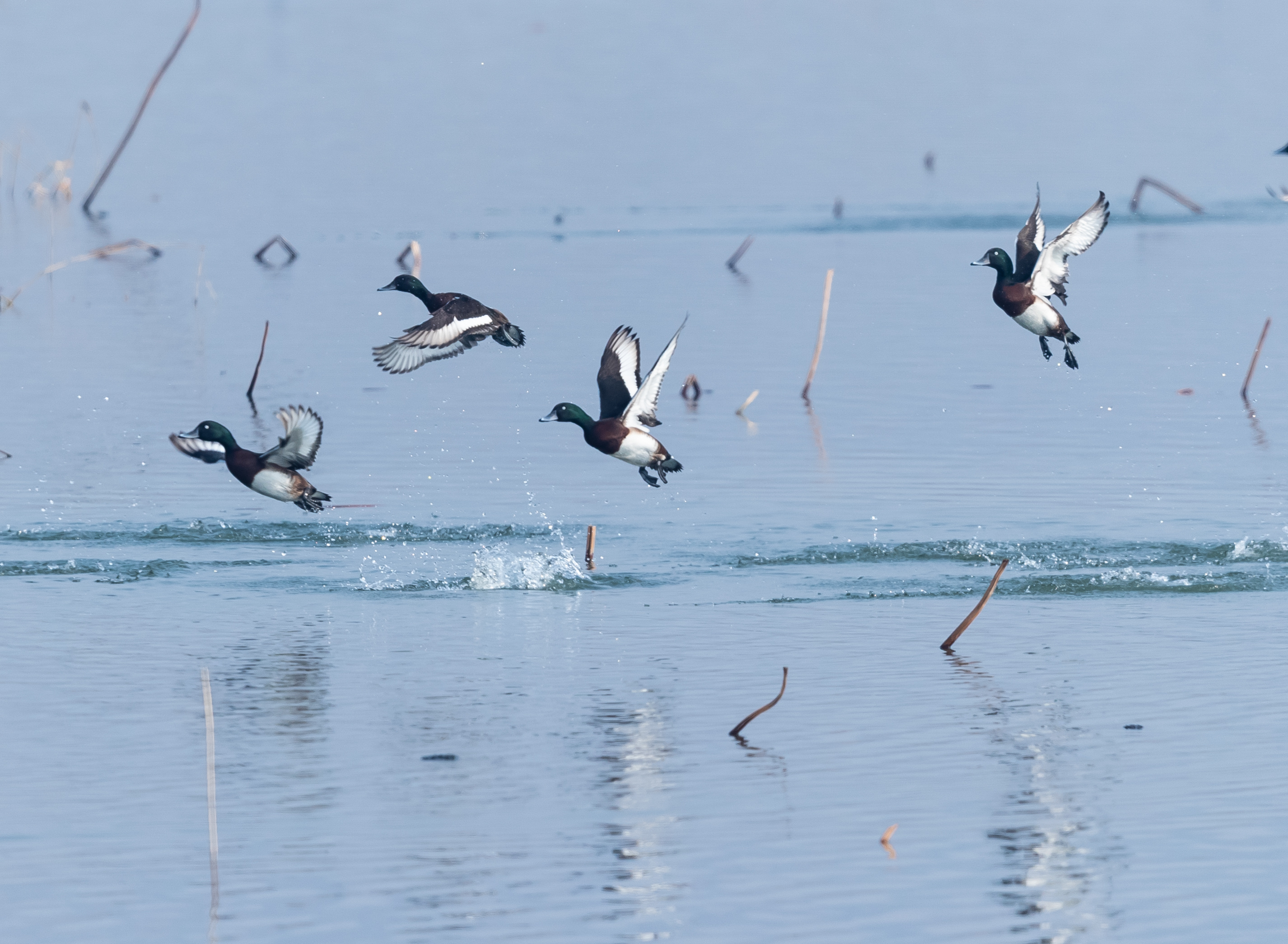 高晓冬说:“这个观测点距离鸟儿近,又属于不打扰青头潜鸭的地方,我们也是寻找了很久才找到的。”作为东平县第一个观察到青头潜鸭的摄影师,亓勇对它们有着特殊的感情。“鸟类是大自然的精灵,我喜欢鸟,也喜欢拍鸟。”
