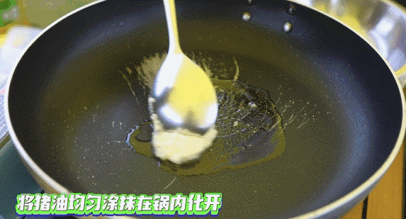 1. 将猪油均匀涂抹在锅内,等待猪油融化