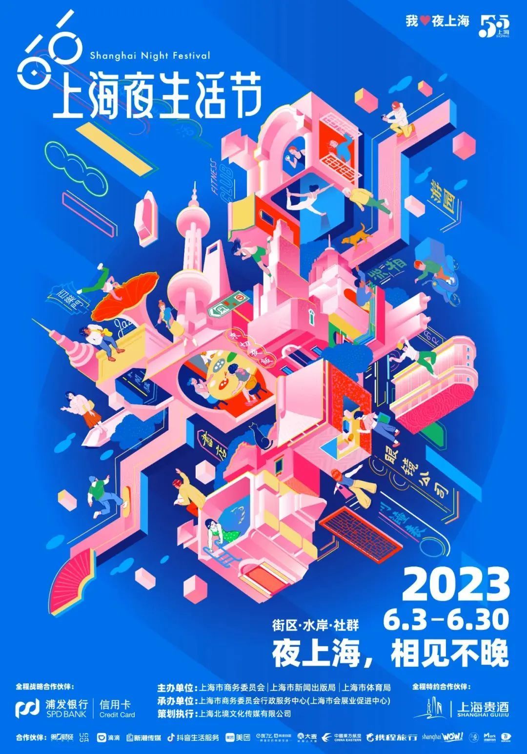 2023上海夜生活节——阅读的力量·深夜书店节,持续推动夜间经济高质量发展,围绕24小时活力城市愿景,聚焦夜读,以“夜”为媒,跨界联动,围绕“街区、水岸、社群”年度主题词,着力将“深夜书店节”打造成为推出夜上海新地标、新载体、新业态、新模式的重要平台和展示夜上海上海味、烟火气、时尚潮、国际范的标志性活动,加快推动上海国际文化中心城市建设。