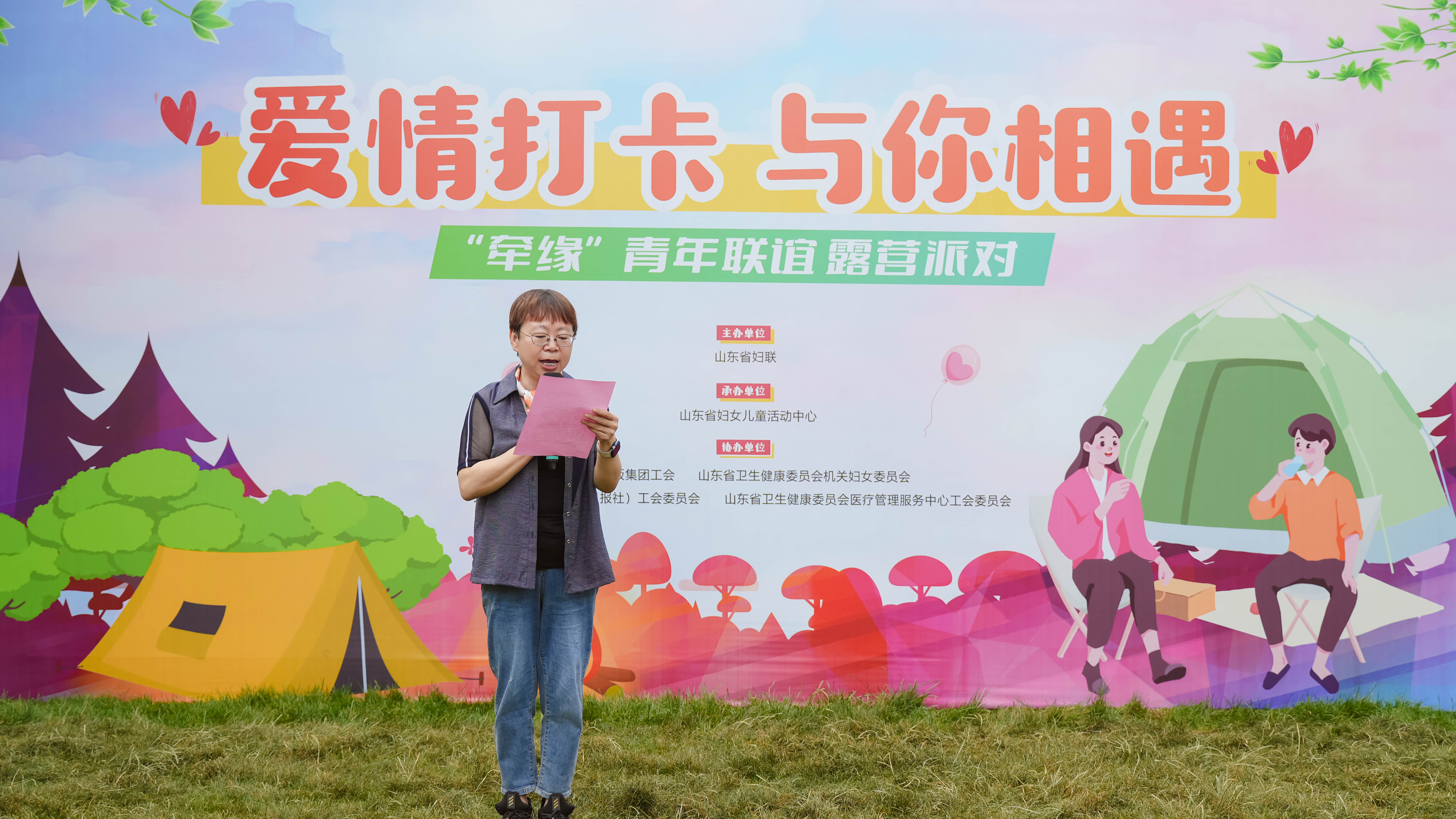 6月3日,由山东省妇联主办,山东省妇女儿童活动中心承办,山东出版集团工会委员会、山东省卫生健康委员会机关妇女委员会、大众报业集团(大众日报社)工会委员会、山东省卫生健康委员会医疗管理服务中心工会委员会联合协办的“爱情打卡 与你相遇”青年交友露营派对活动在济南新月集营地举办。来自省直机关、事业单位近60名单身青年参加活动。