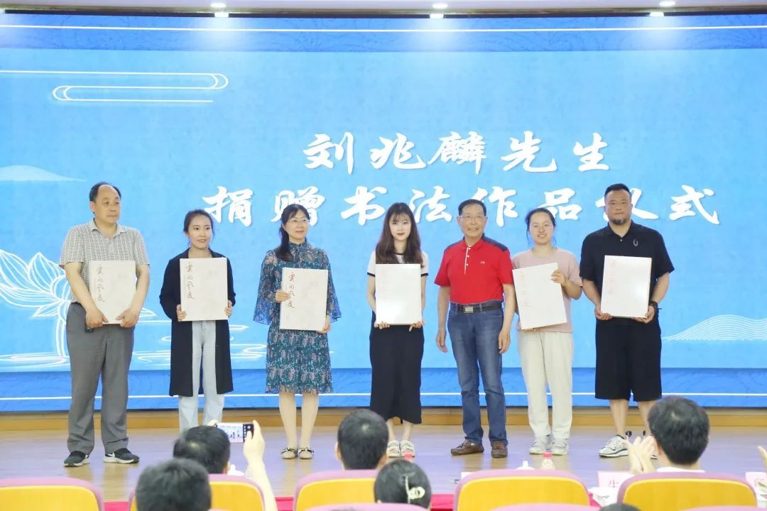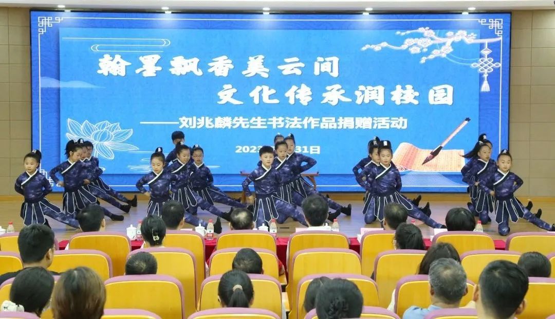 2023年5月31日,刘兆麟先生在松江区九亭第五小学向松江区中小学捐赠个人书法作品及作品集。区文旅局副局长张国强,区教育局副局长朱永,区文联副主席兼秘书长杨雨清,区教育局体艺科负责人,区语委办干部,区教育学院书法学科研训员及松江区各中小学教师代表出席本次捐赠活动。