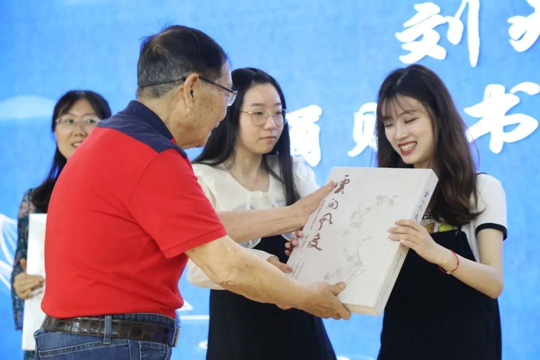 活动中,刘兆麟老师向全区各中小学捐赠了自己的书画作品集《云间风度》,代表学校教师上台接受捐赠。