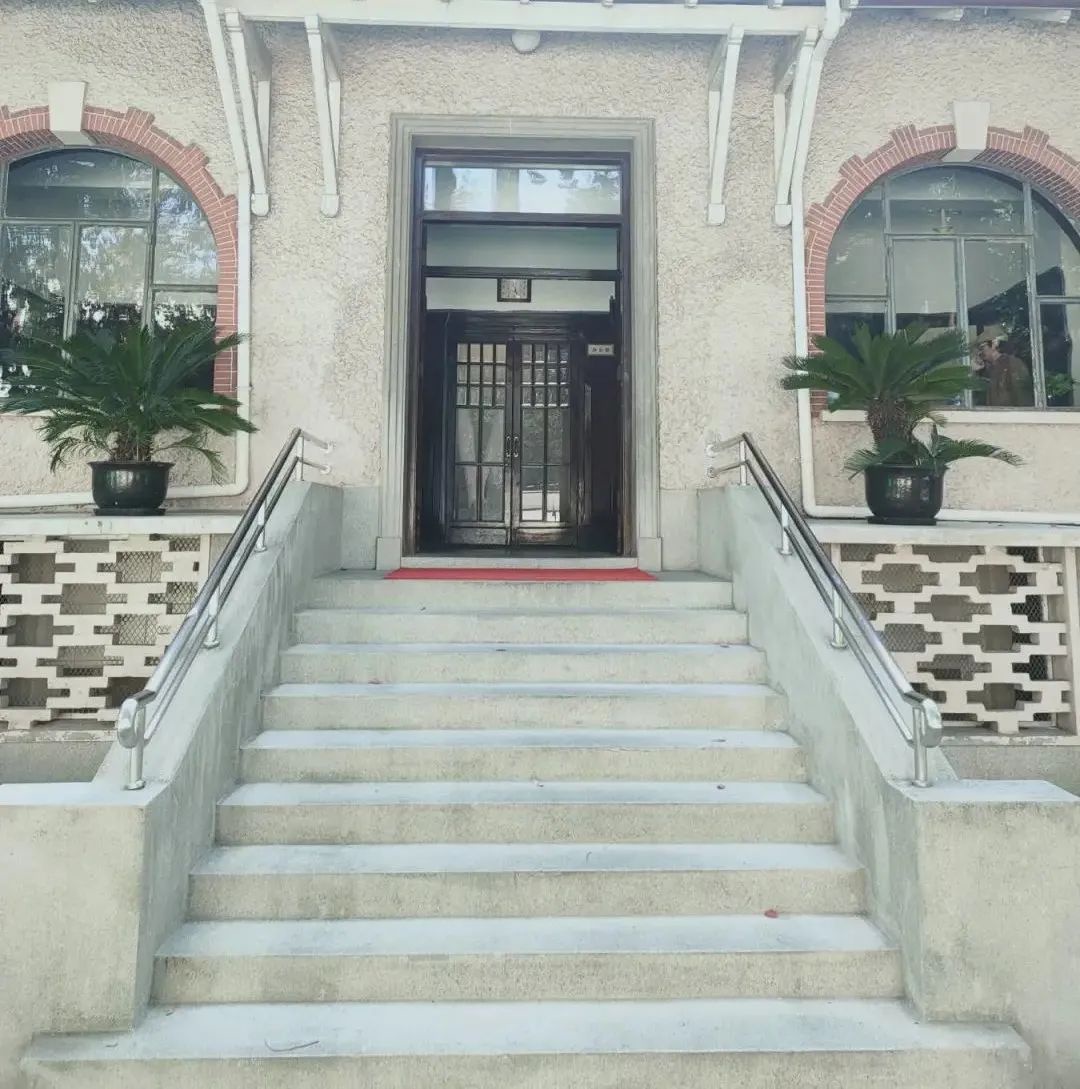 建筑以入口台阶为中心,底层左右两侧有两扇拱形窗。三层为3扇方形钢窗,沿窗户四周都用红砖白粉槽勾勒装饰。
